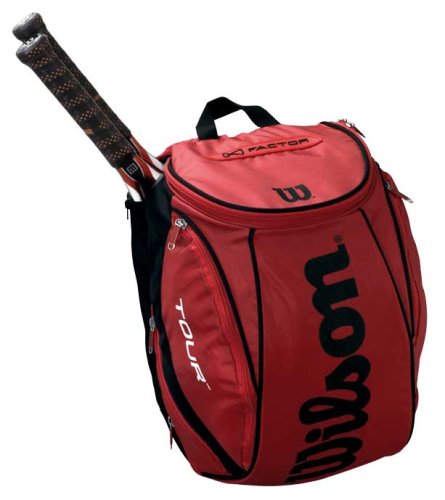 New for 2009, Wilson introduces the K Tour Collection - the first environmentally friendly tennis bags, now PVC free. The K Tour BackPack is one of the most versatile bags from Wilson and has a new red and black cosmetic.