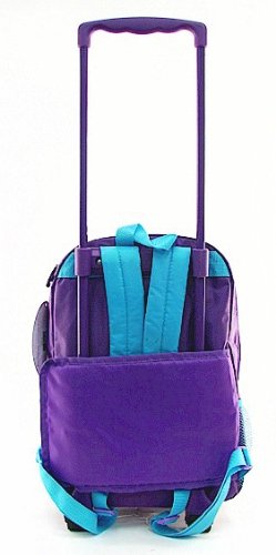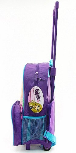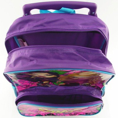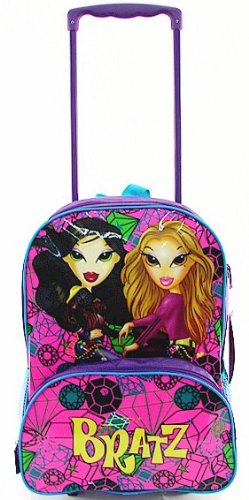 This Bratz backpack is perfect for your little diva who needs to get organized!! The Pink and purple Bratz backpack includes the Bratz logo on the bag & full size color photo of the Bratz posing on the Bag. Backpack straps are Blue adjusters. The Bratz backpack includes (2) two separate zipper sections. Each section fully unzips for optimal access. It comes with an extendable handle and wheels for easy rolling.