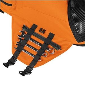 Icon Squad II Backpack The Squad II backpack features unique reflective upper arm straps for increased visibility. Its unique comfort-fit chest closure system allows for a greater coverage area of reflective material while also securing the backpack in a way that is far superior to standard shoulder straps when riding. But wait, theres more The Squad II has more stuffable pockets than Winona Rider in a jewelry store. Specifically a secure 15" laptop carry compartment and a mp3 playercell phone compartment with ear bud cord management system. In addition, port and starboard wing compartments are designed for tool and first aid storage. When off the bike, the Squad II is configured to deploy a helmet storage compartment and has several tie-down straps allowing riding jackets and gloves to be secured. All of this results in a highly-specialized riding specific pack system with the appearance of a high-altitude jump rig. Features Orange and Yellow colorways meet U.S. military PPE hi-viz specifications